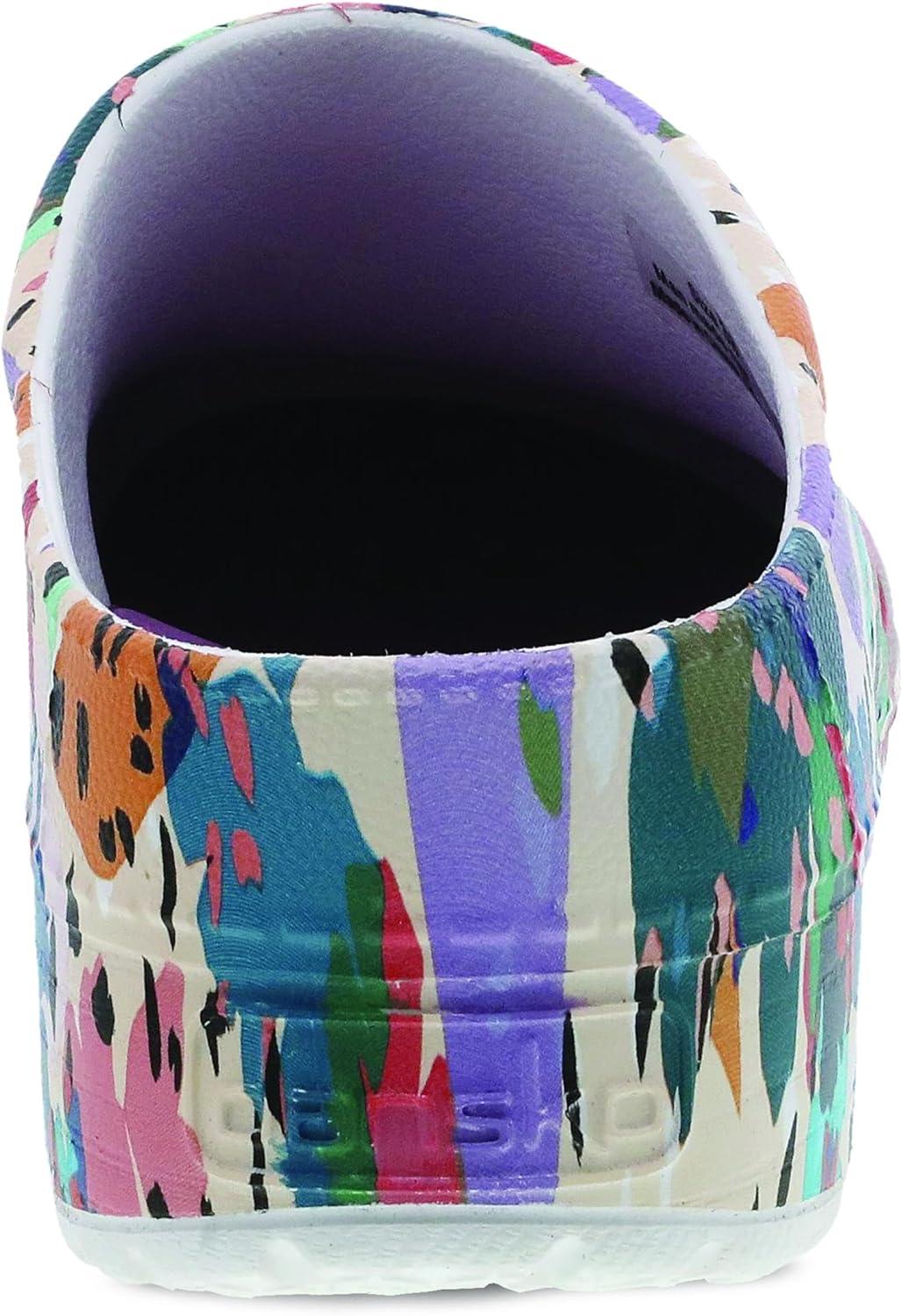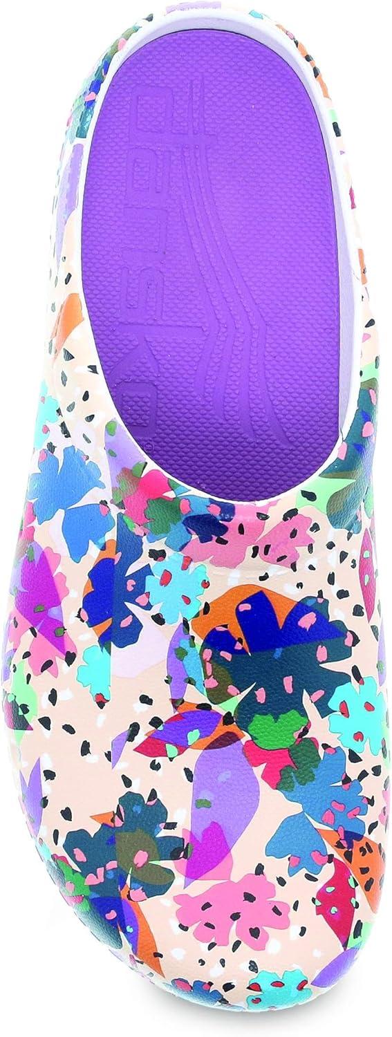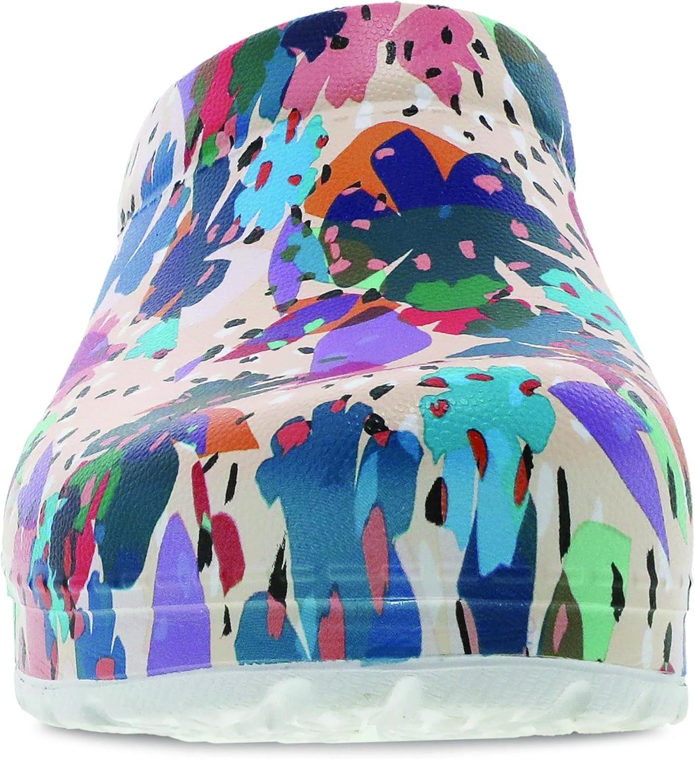 Dansko Kane Slip-On Mule Clog for Women – Lightweight Cushioned Comfort and Removable EVA Footbed with Arch Support – Easy Clean Uppers(Flower Party)