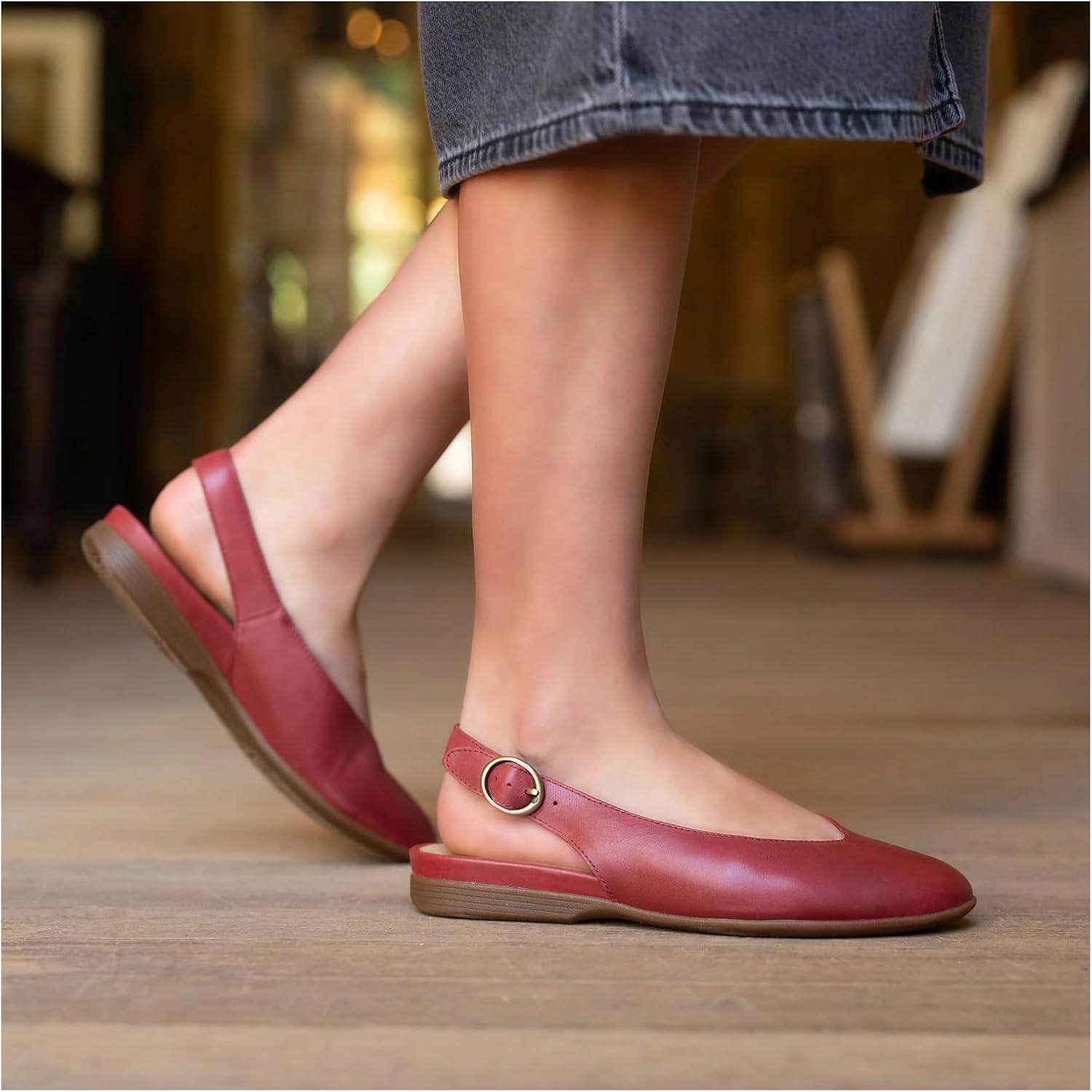 Dansko Lea Slingback Flats for Women – Comfortable Flats with Arch Support for Comfort(Red)
