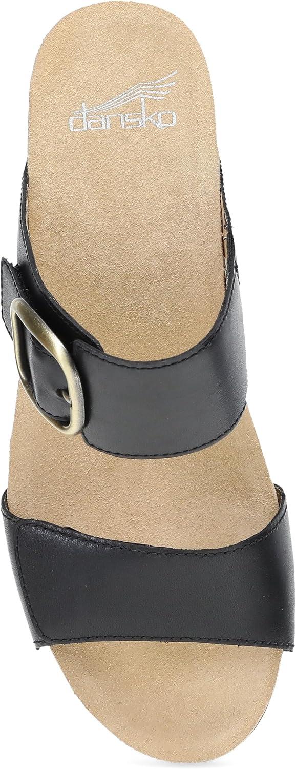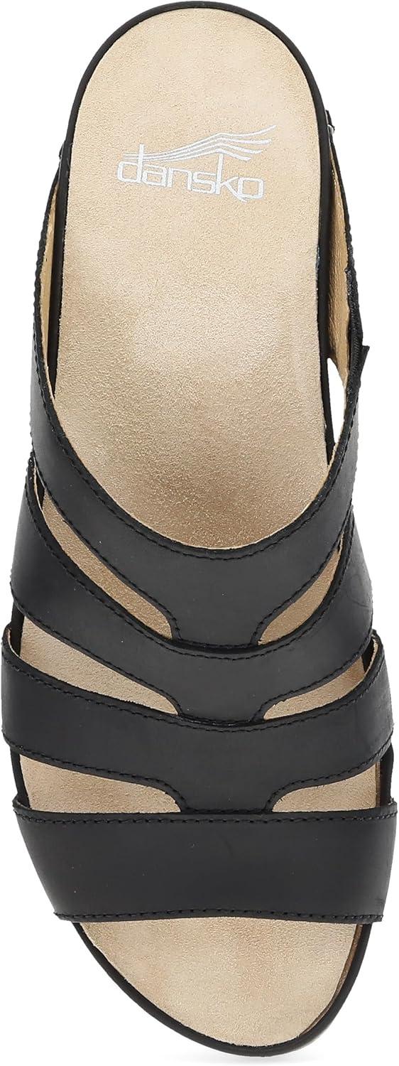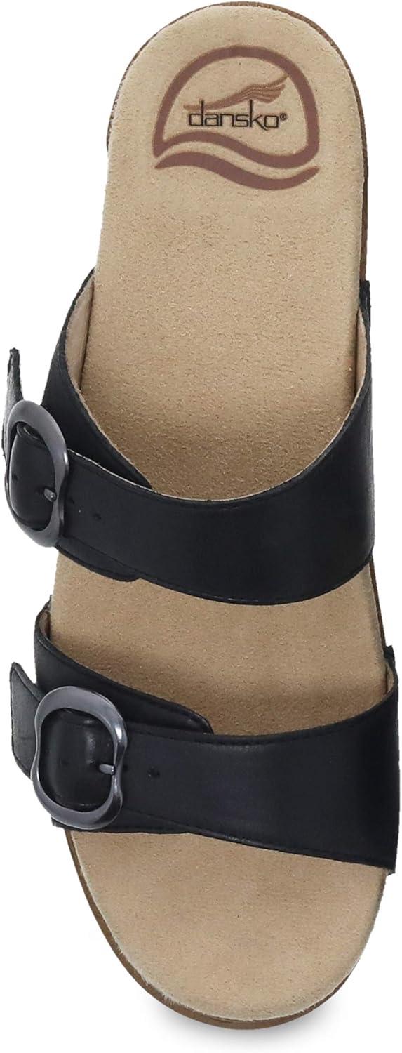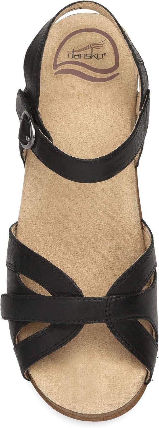 Dansko Rylee Sandal for Women – Memory Foam and Cork Footbed for Comfort and Arch Support – Lightweight Rubber Outsole for Long-Lasting Wear(Black Leather)