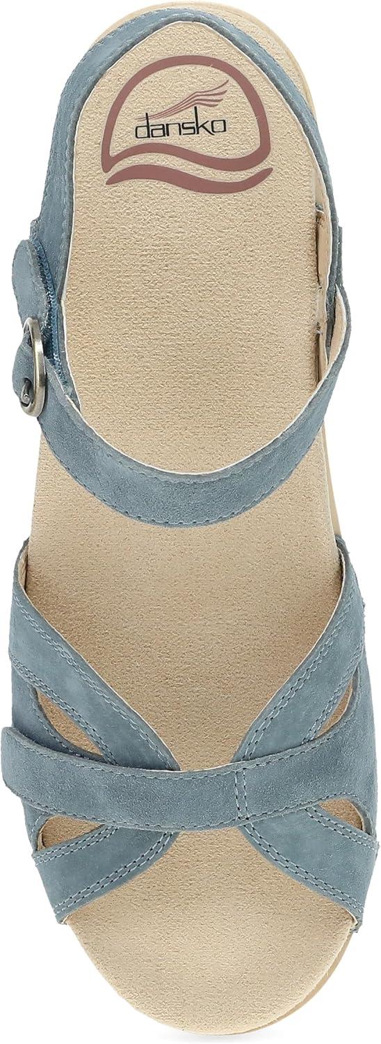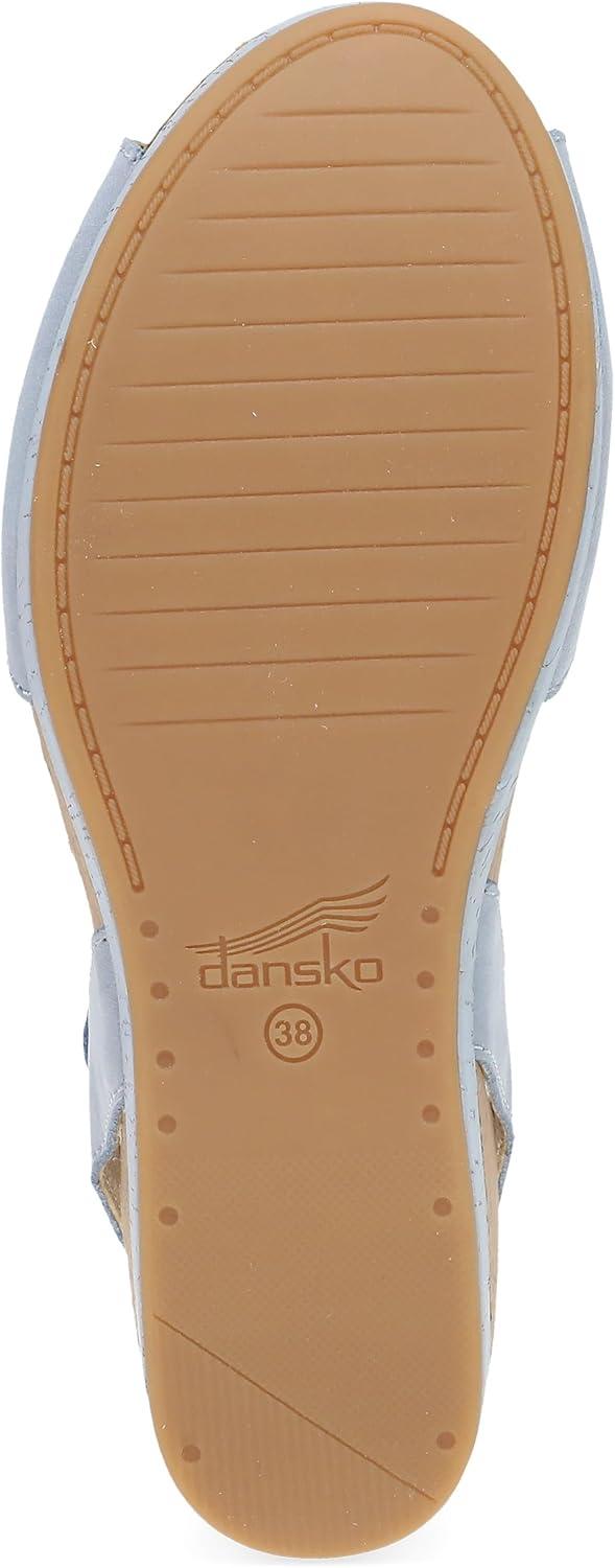 Dansko Cass Peep-Toe Wedge Sandal for Women –Low Profile Wedge with Arch Support, Adjustable Fit for Walking Comfort(Blue/Tan)