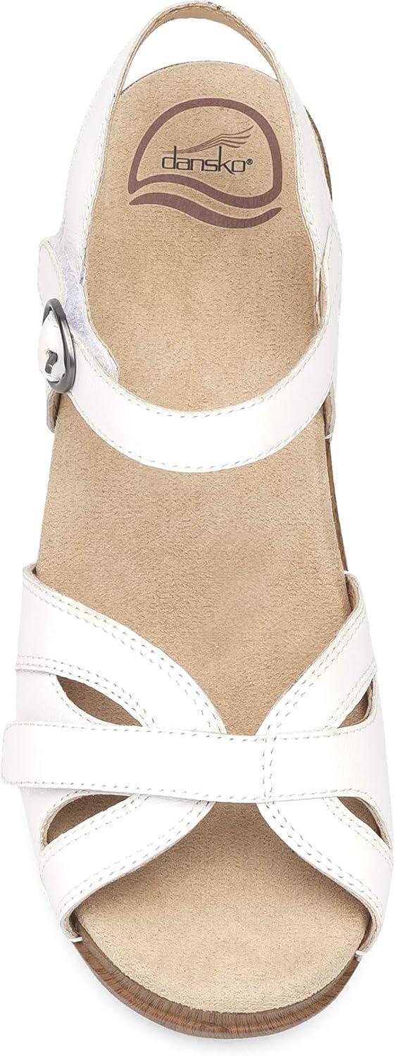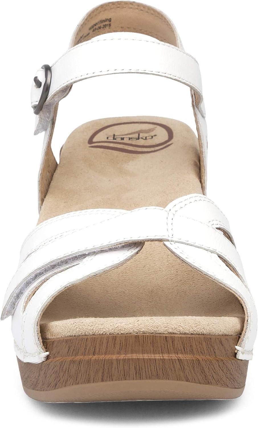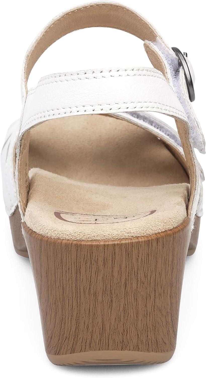 Dansko Justine Adjustable Sandal for Women – Leather Linings and Uppers for All-Day Comfort – Dual-Density EVA Footbed and Lightweight Rubber Outsole for Long-Lasting Wear(White)