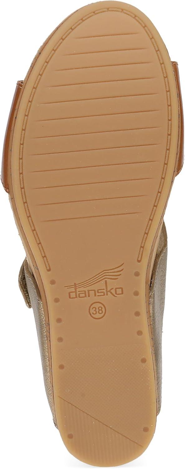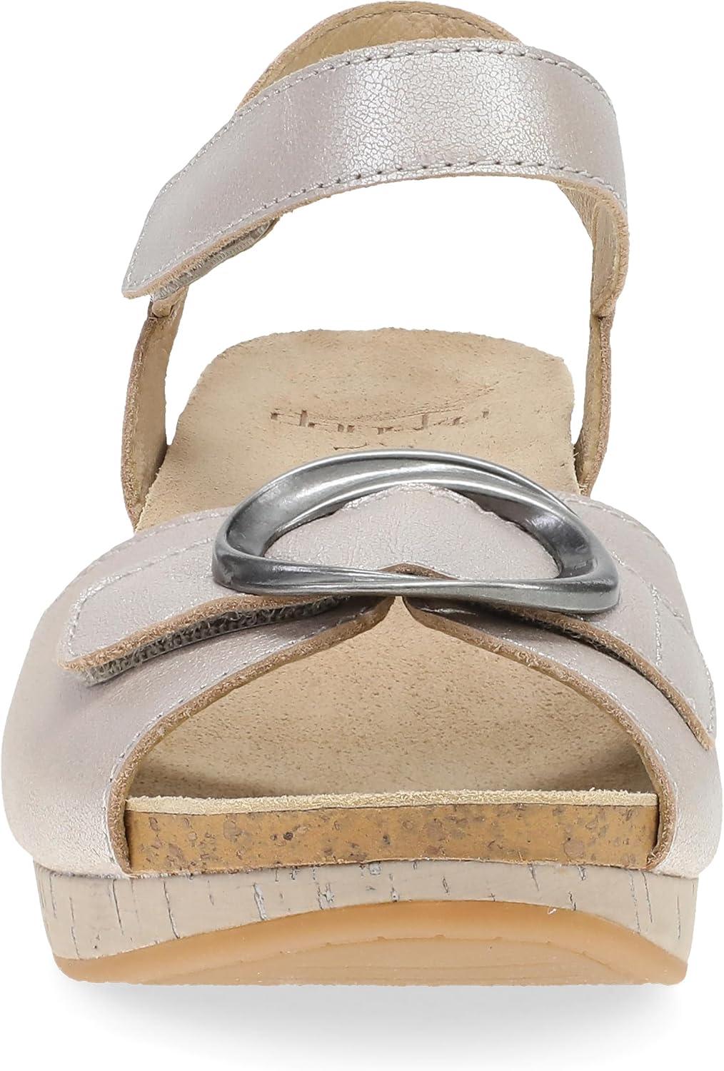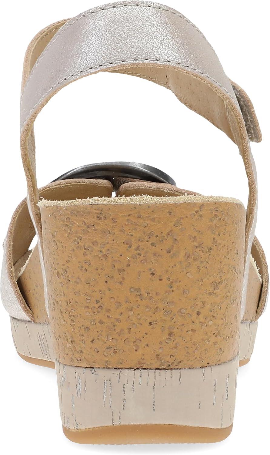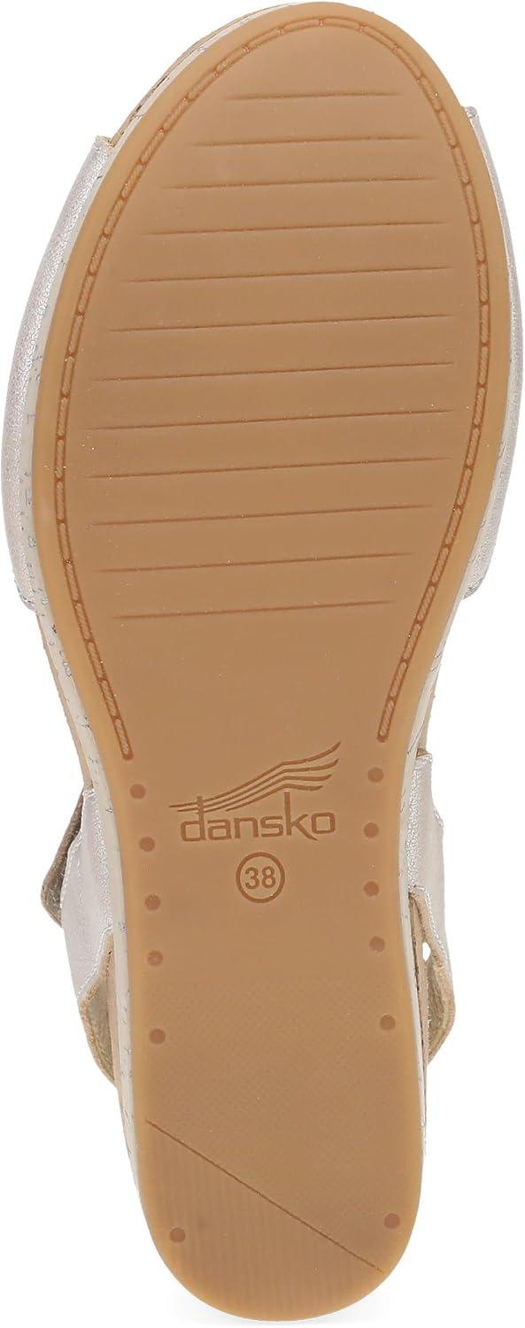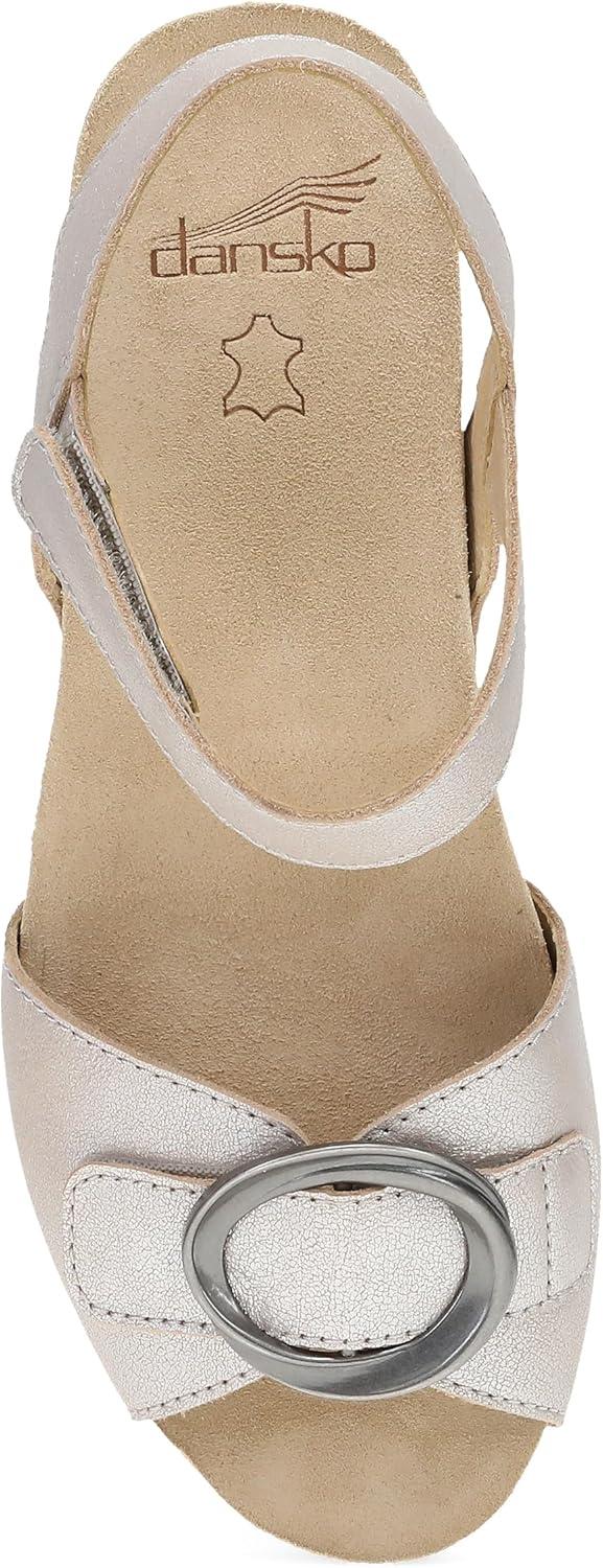 Dansko Cass Peep-Toe Wedge Sandal for Women –Low Profile Wedge with Arch Support, Adjustable Fit for Walking Comfort(Platino/Tan)