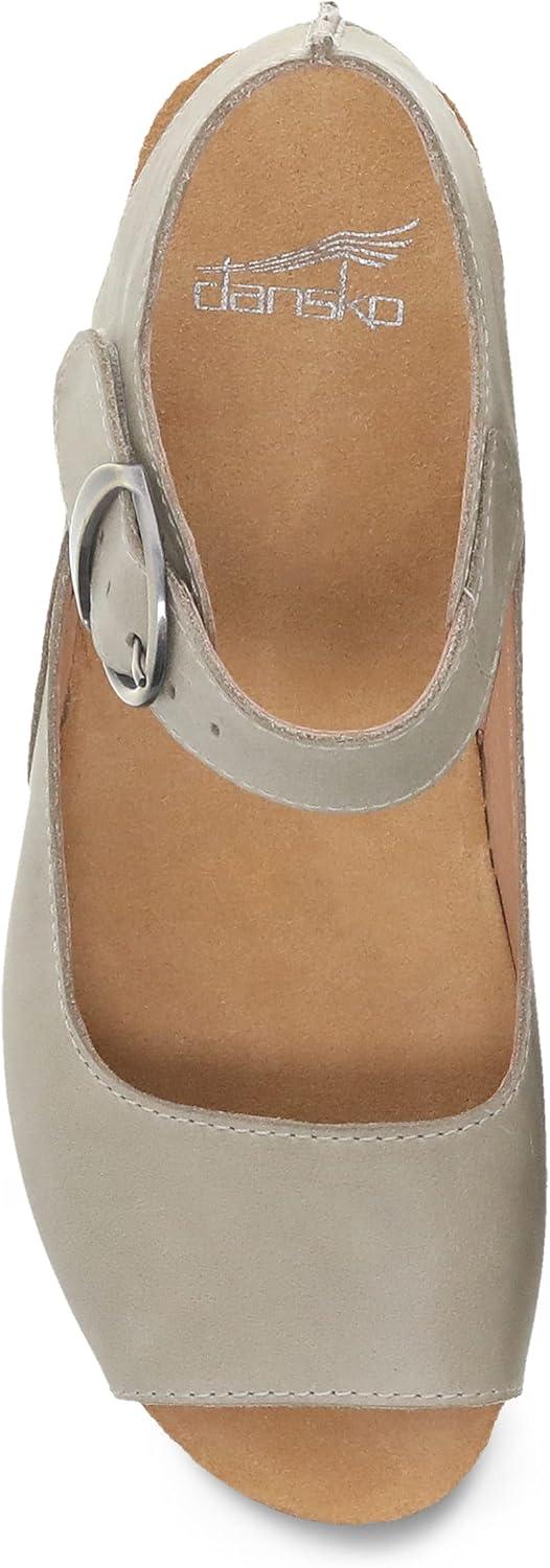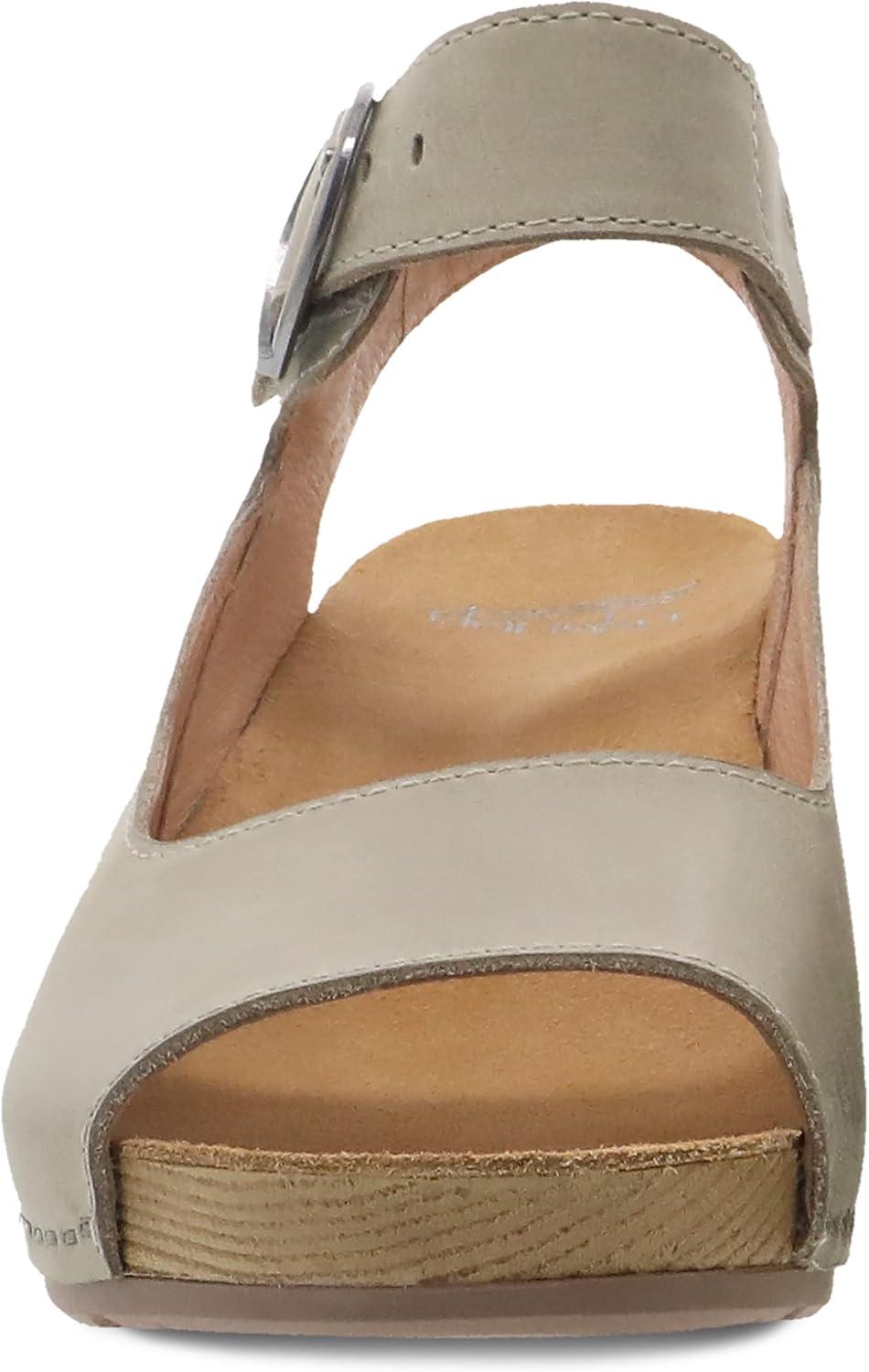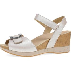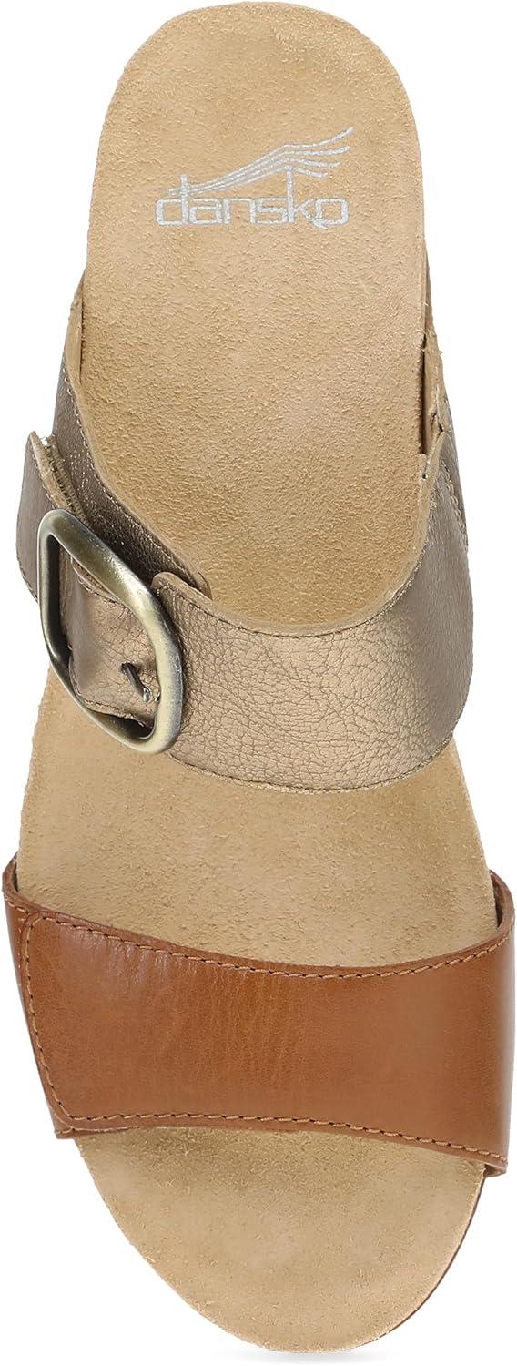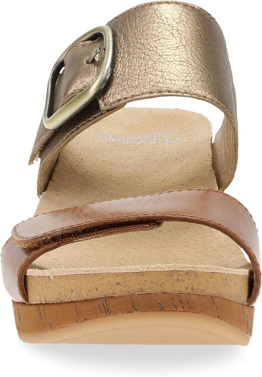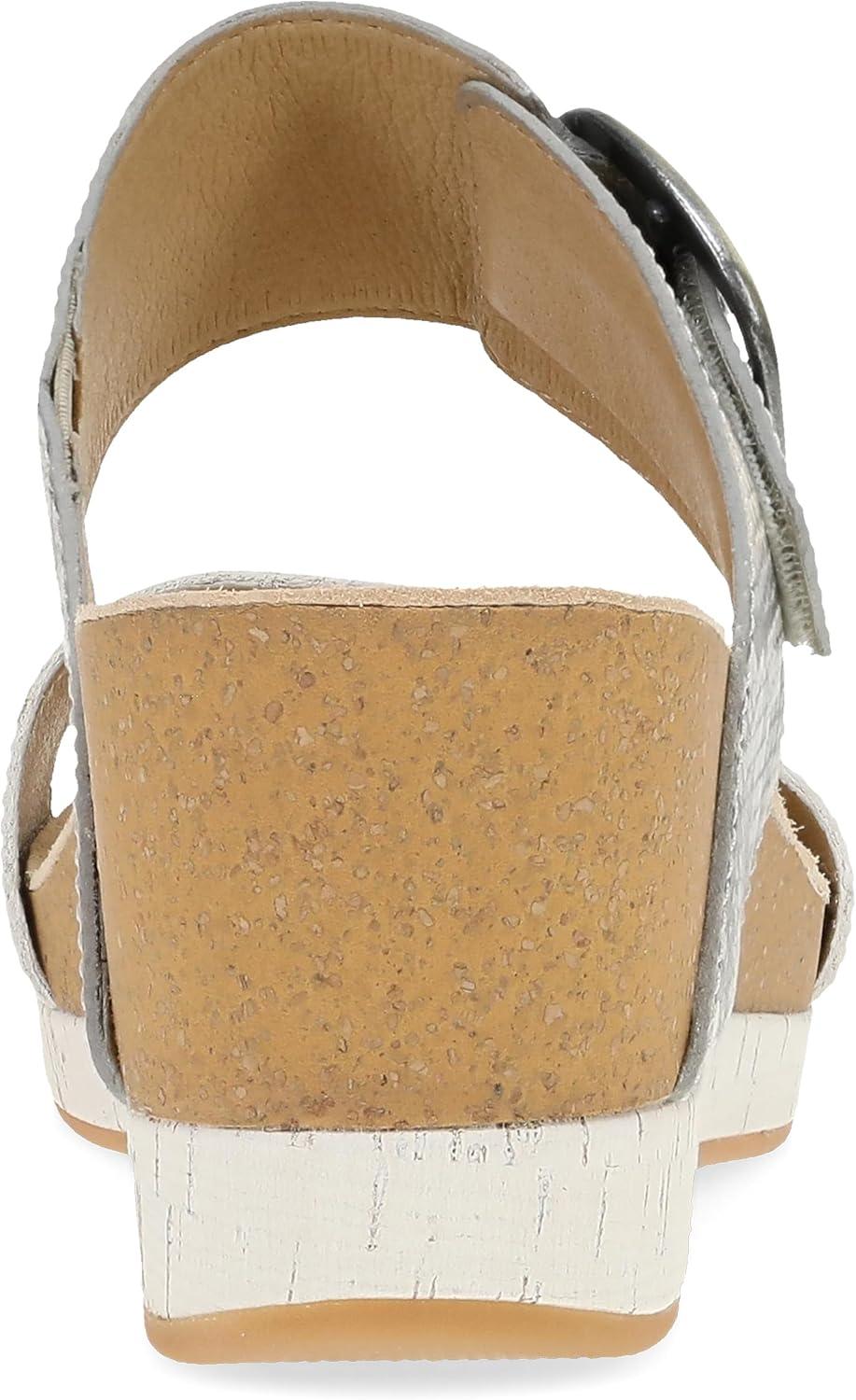 Dansko Cass Peep-Toe Wedge Sandal for Women –Low Profile Wedge with Arch Support, Adjustable Fit for Walking Comfort(Platino/Tan)