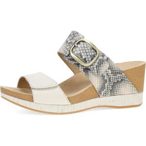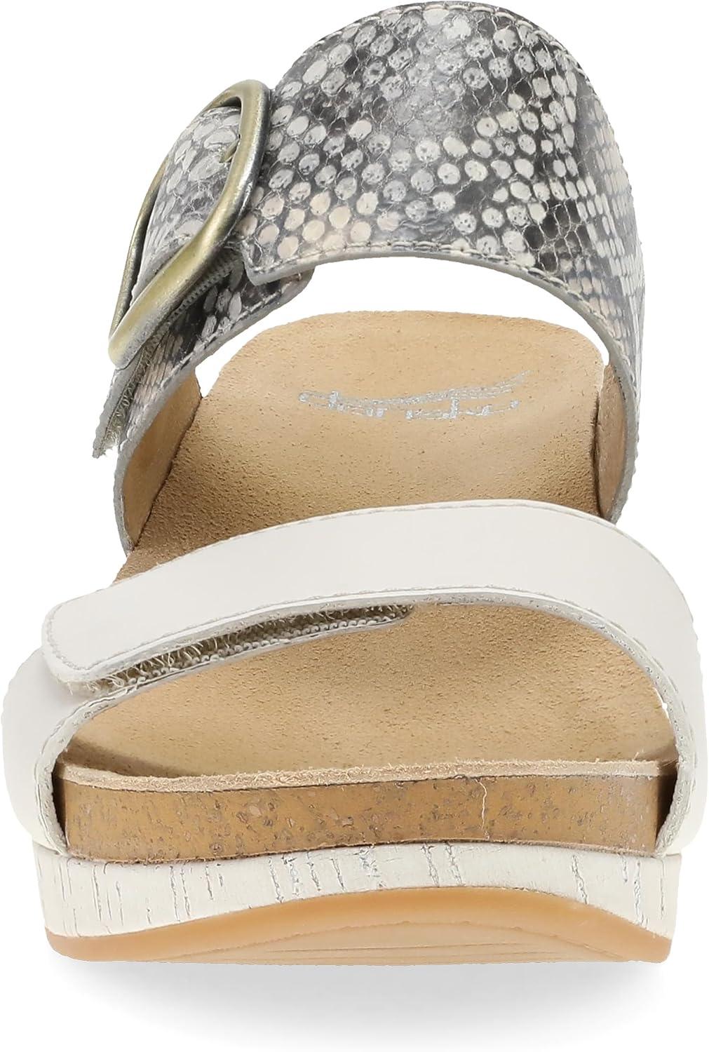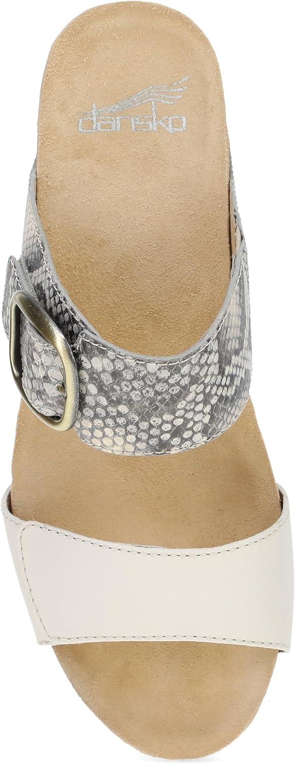 Dansko Shannon Slip-On Wedge Sandal for Women – Cork/EVA Wedge with Arch Support -Fully Adjustable Straps-Versatile Casual to Dressy Footwear(Snake Ivory)