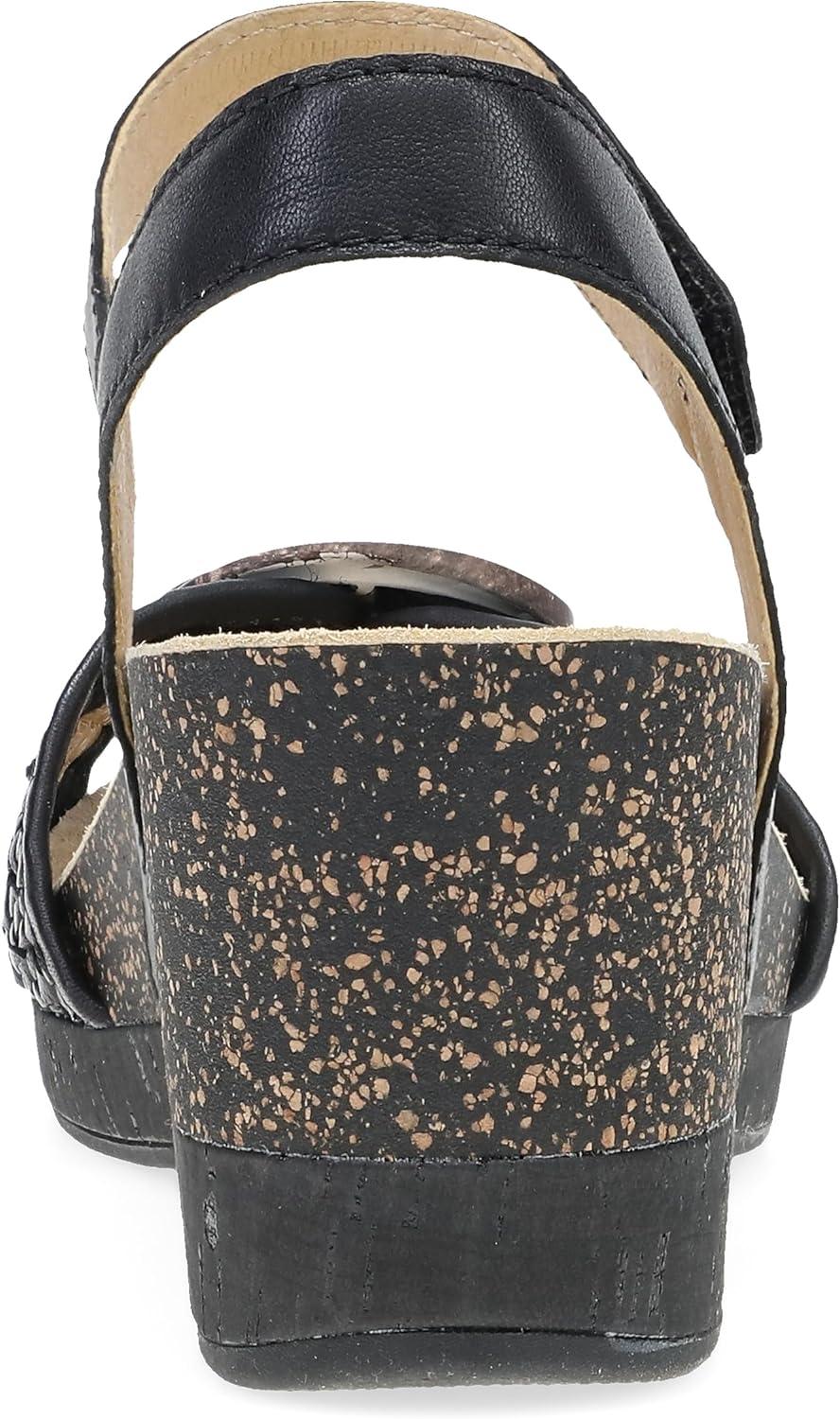 Dansko Stella Multi-Strap Wedge Sandal for Women – Cork/EVA Wedge with Arch Support -Fully Adjustable Straps-Lightweight Rubber Outsole(Black Woven)