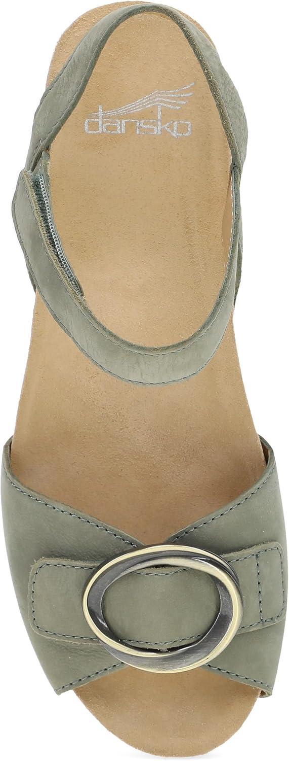 Dansko Cass Peep-Toe Wedge Sandal for Women –Low Profile Wedge with Arch Support, Adjustable Fit for Walking Comfort(Sage)