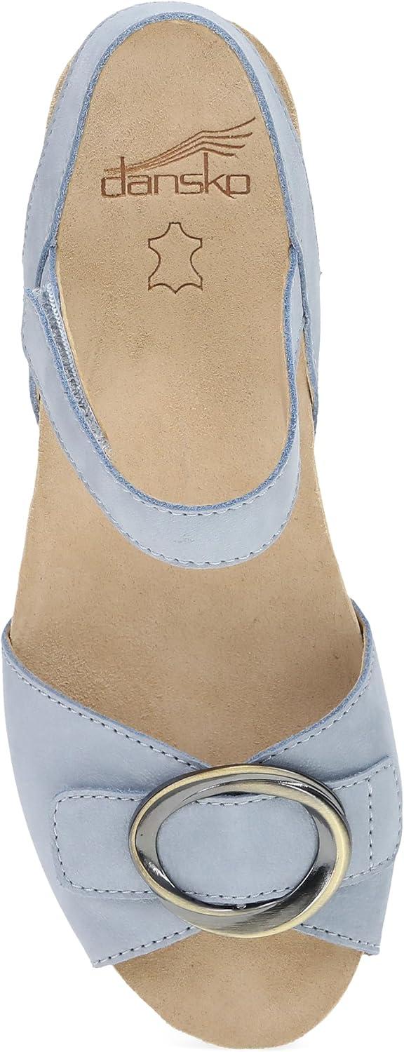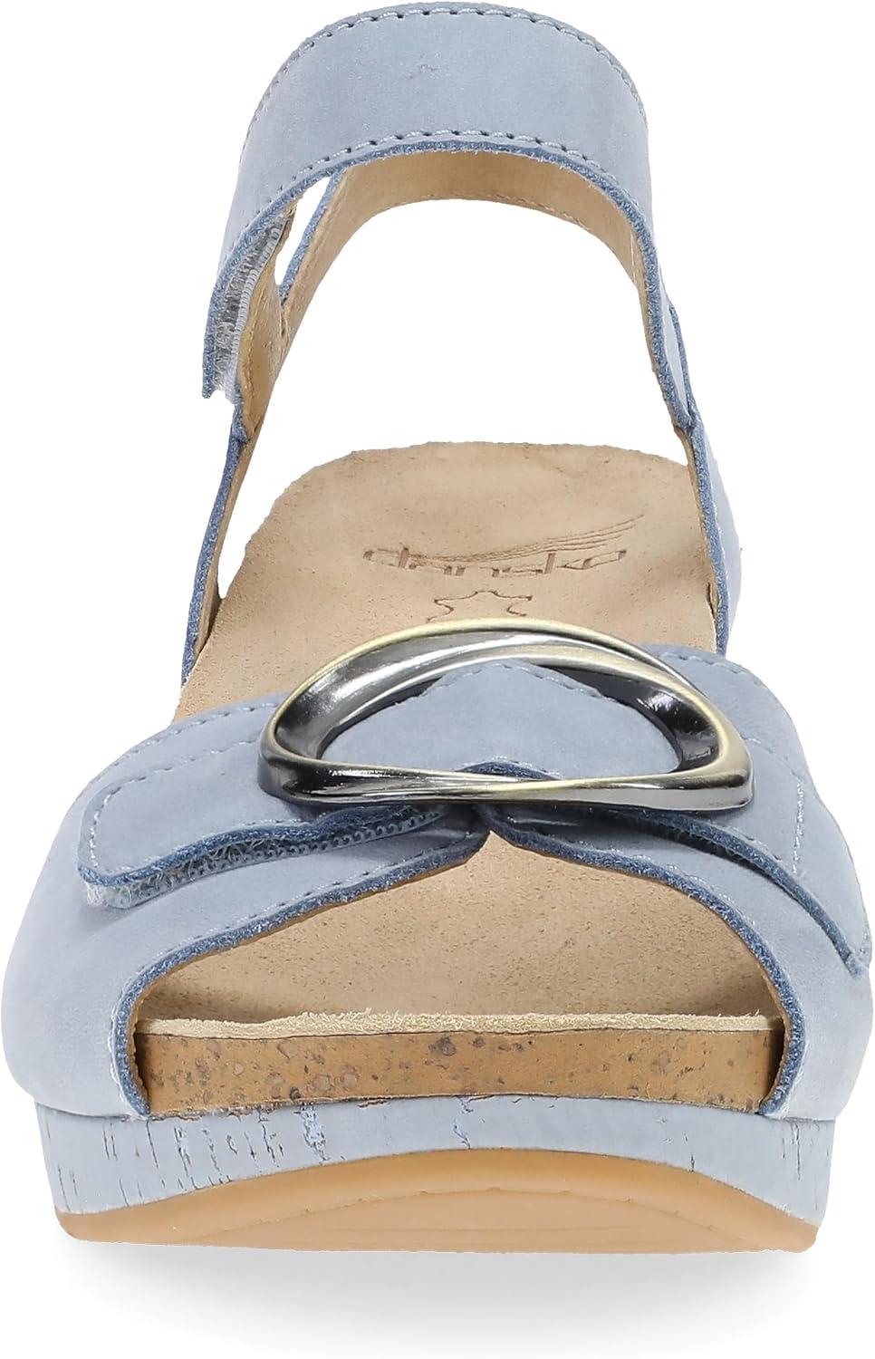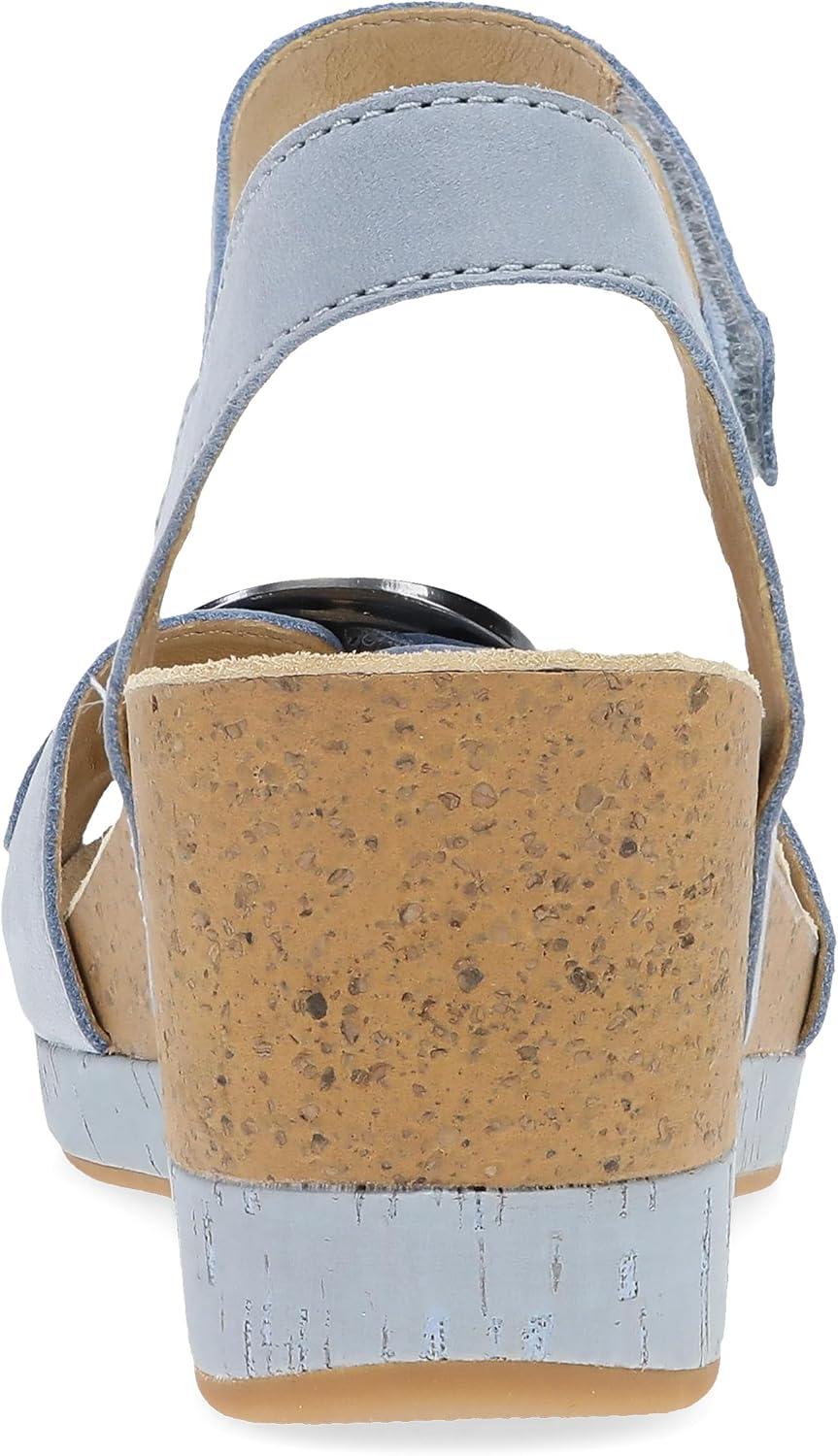 Dansko Stella Multi-Strap Wedge Sandal for Women – Cork/EVA Wedge with Arch Support -Fully Adjustable Straps-Lightweight Rubber Outsole(Sky)