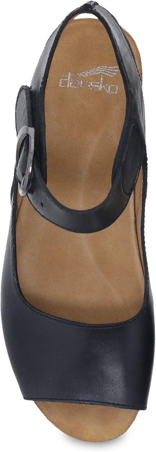 Dansko Cass Peep-Toe Wedge Sandal for Women –Low Profile Wedge with Arch Support, Adjustable Fit for Walking Comfort(Black)
