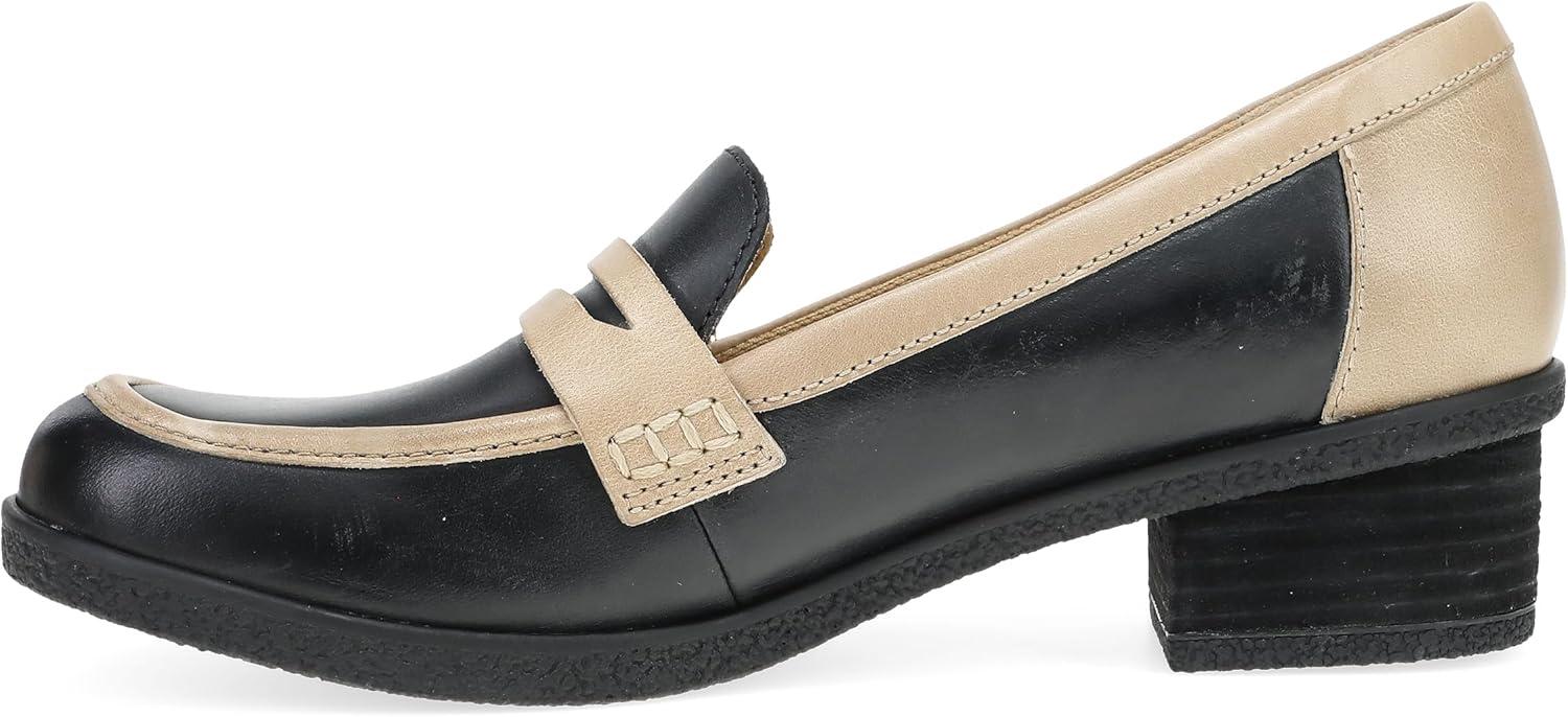Dansko Danica Heeled Loafer for Women – Waterproof Leather with Rubber Outsole and Leather Stacked Heel for Long-Lasting Style in Any Weather(Black/Dune)