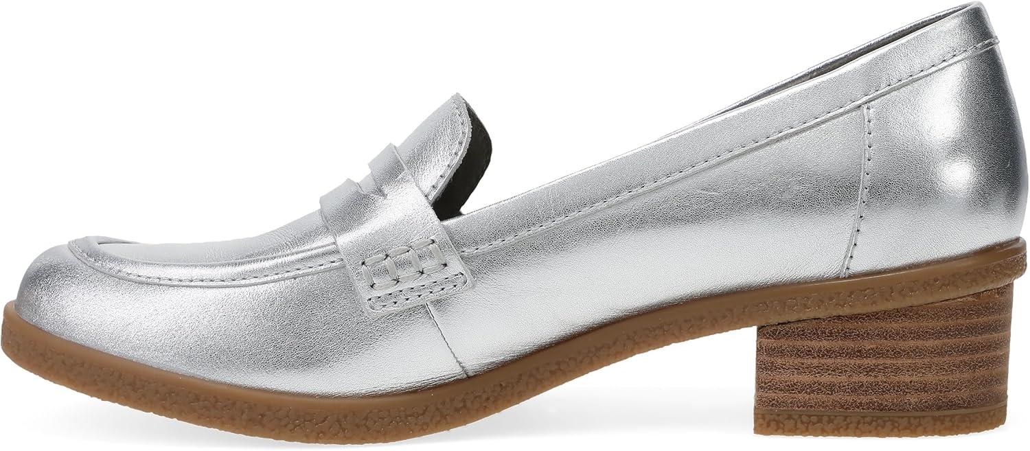 Dansko Danica Heeled Loafer for Women – Waterproof Leather with Rubber Outsole and Leather Stacked Heel for Long-Lasting Style in Any Weather(Silver)