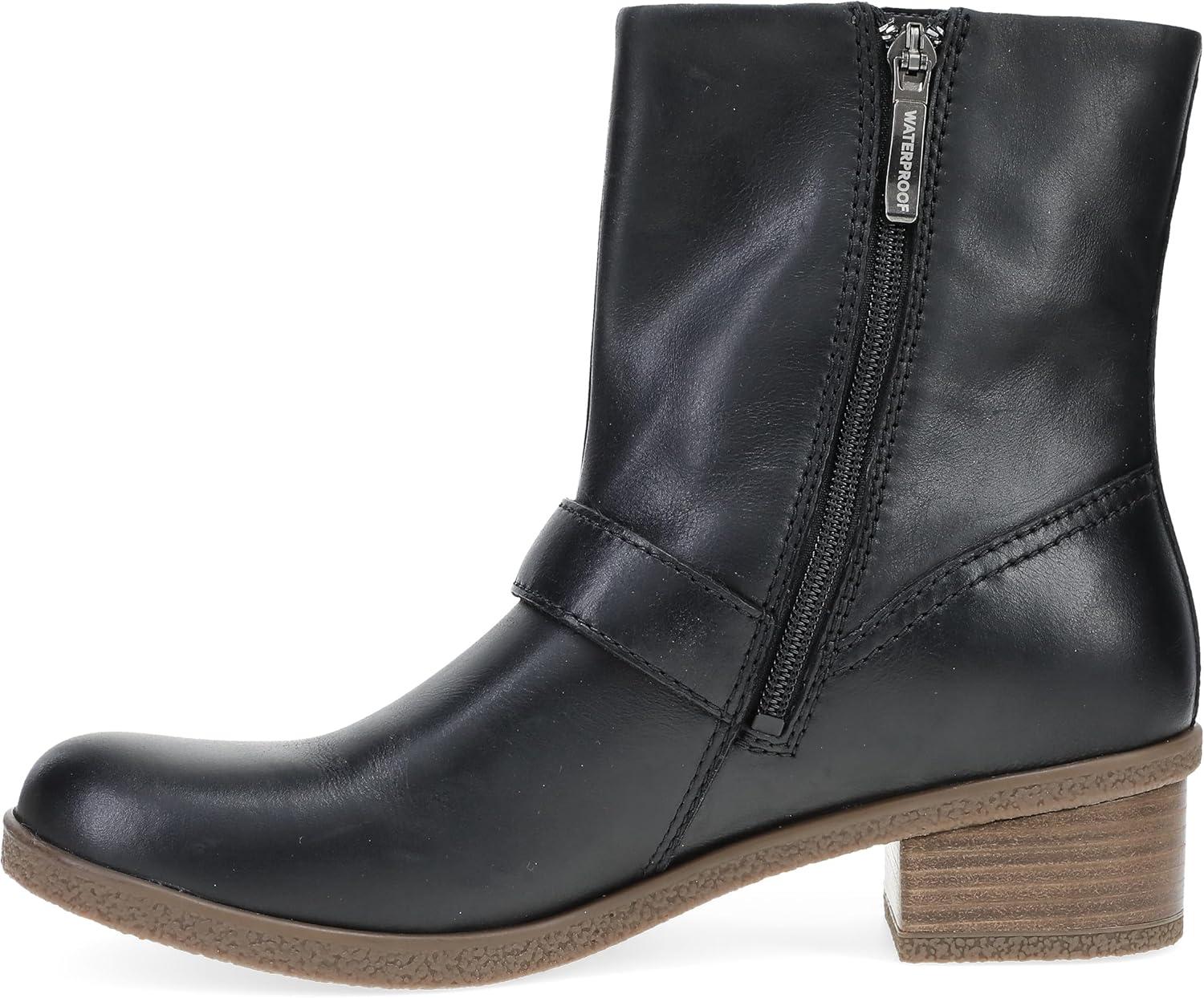 Dansko Delphine for Women – Super Stylish Mid-Shaft Boot – Waterproof Leather and Construction with Rubber Outsole and Leather Stacked Heel for Long-Lasting Style in Any Weather(Black)