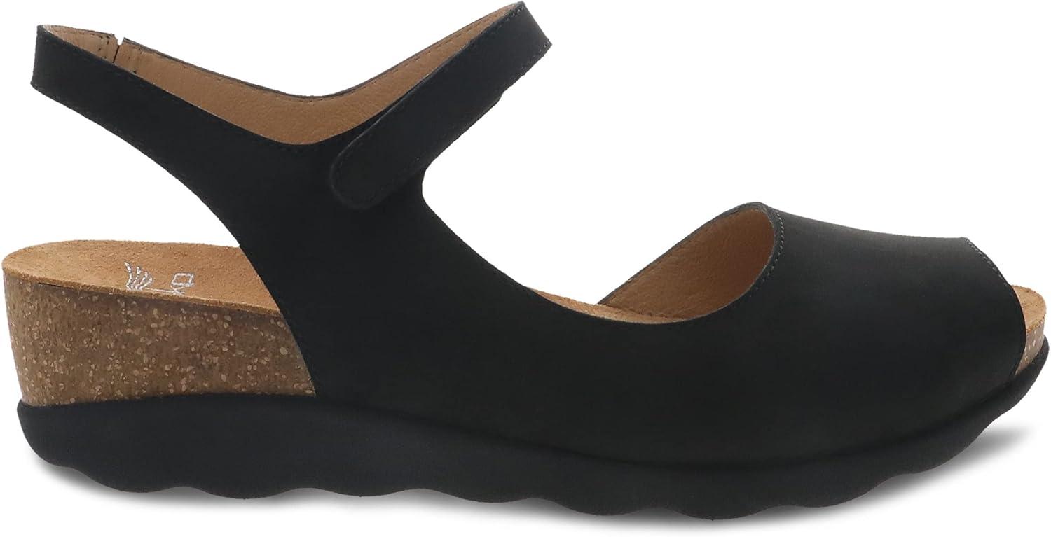Dansko Marcy Slip-On Wedge Sandal for Women – Comfortable Wedge Shoes with Arch Support -Adjustable Hook & Loop Strap – Versatile Casual to Dressy Footwear – Lightweight Rubber Outsole(Black)