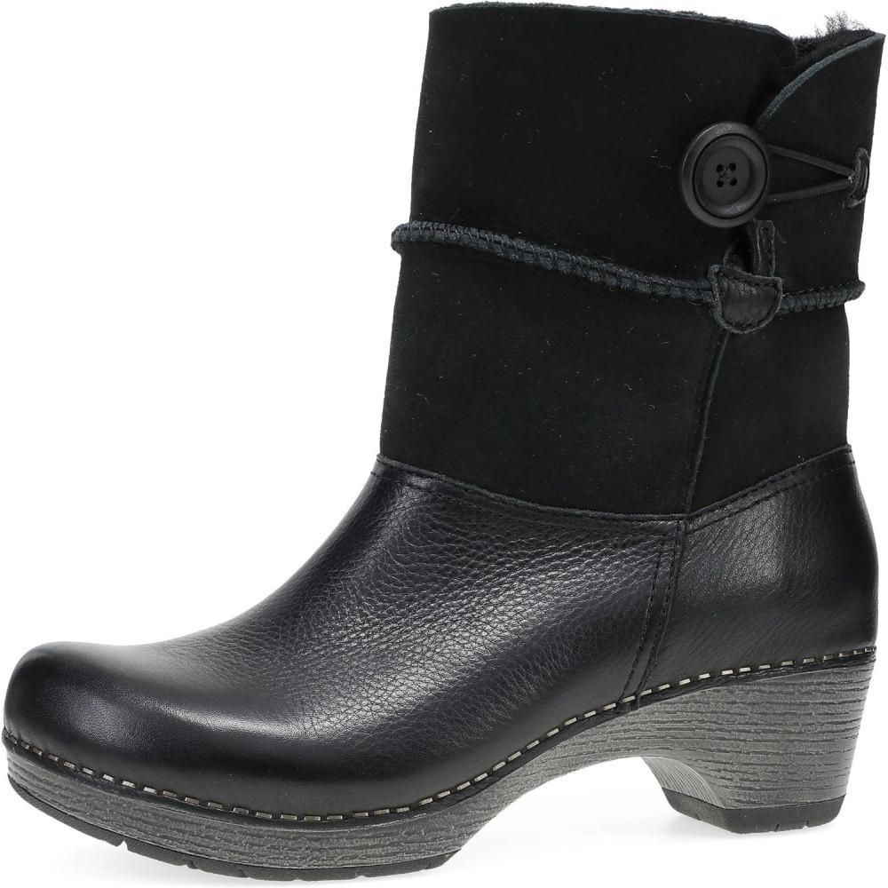 Dansko Multi-Look Fur Boots for Women Lilith Winter Boot with Real Shearling Shaft and Button Closure for Adjustable Fit and Style(Black)