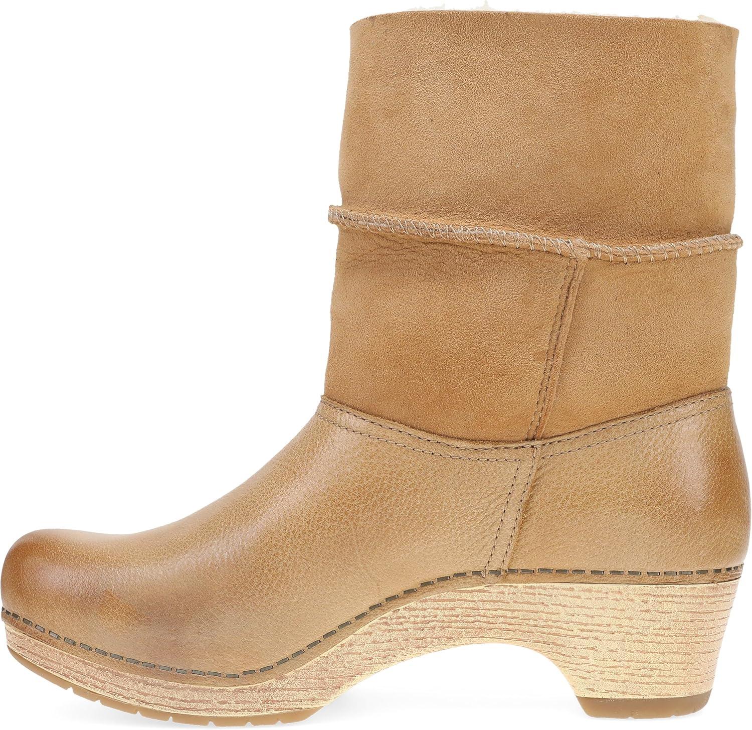 Dansko Multi-Look Fur Boots for Women Lilith Winter Boot with Real Shearling Shaft and Button Closure for Adjustable Fit and Style(Honey)