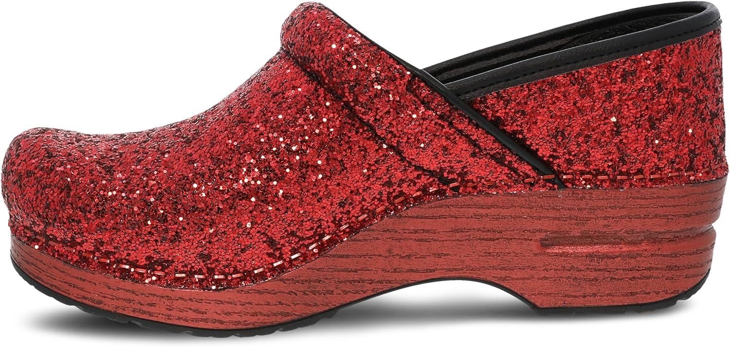 Dansko Professional Glitter Slip-On Clogs for Women – Rocker Sole and Arch Support for Comfort – Shiny and Stylish Glitter Uppers(Red)
