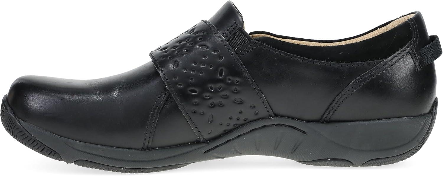 Dansko Sallie Women’s Comfort Shoe – Padded Leather Upper, Adjustable Hook and Loop Vamp, Comfort Foam Footbed with Arch Support, Slip Resistant Outsole(Black)
