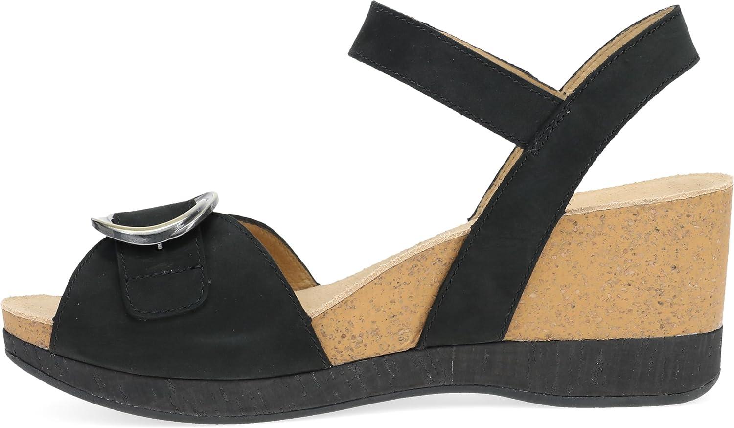 Dansko Stella Multi-Strap Wedge Sandal for Women – Cork/EVA Wedge with Arch Support -Fully Adjustable Straps-Lightweight Rubber Outsole(Black)