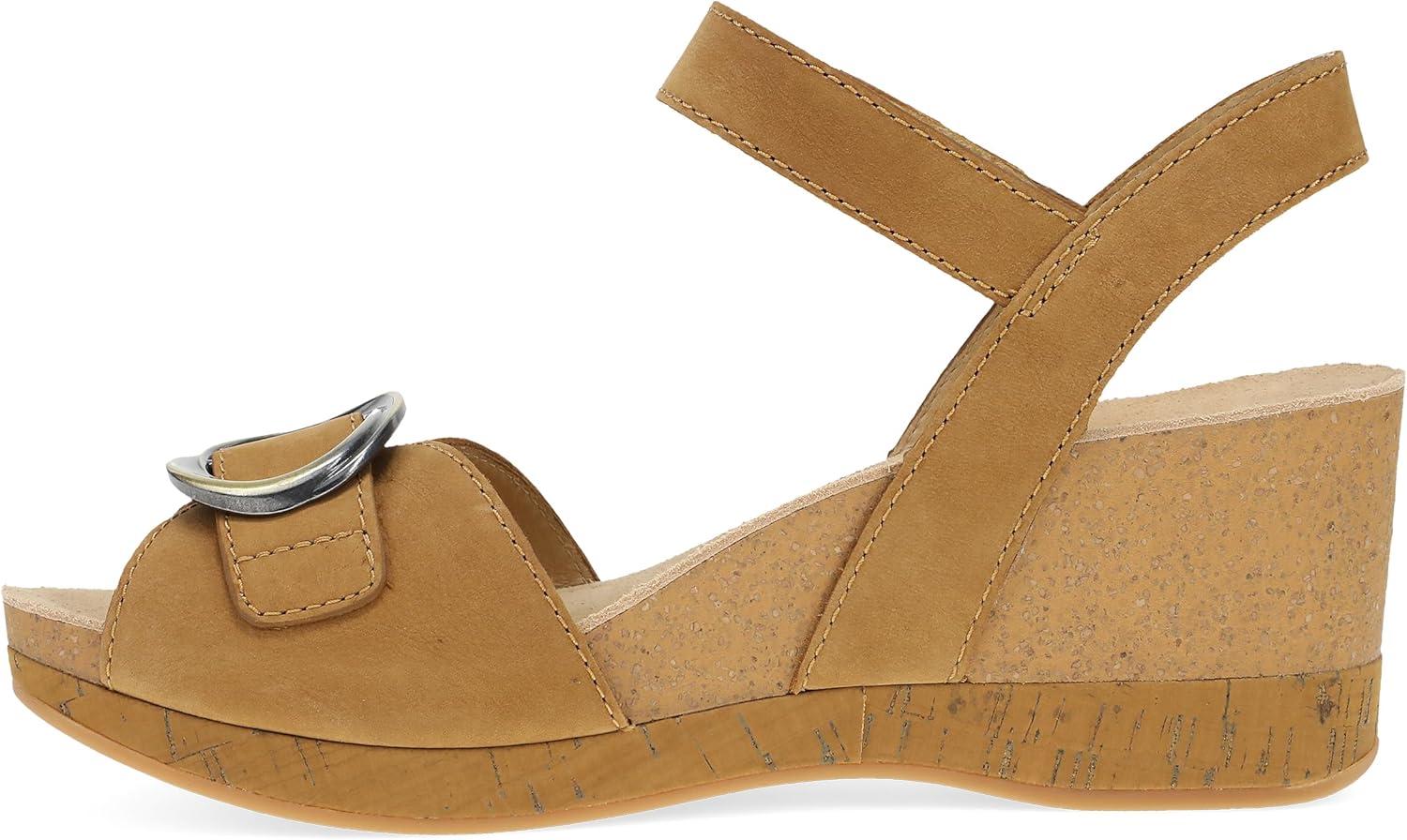 Dansko Stella Multi-Strap Wedge Sandal for Women – Cork/EVA Wedge with Arch Support -Fully Adjustable Straps-Lightweight Rubber Outsole(Dijon)