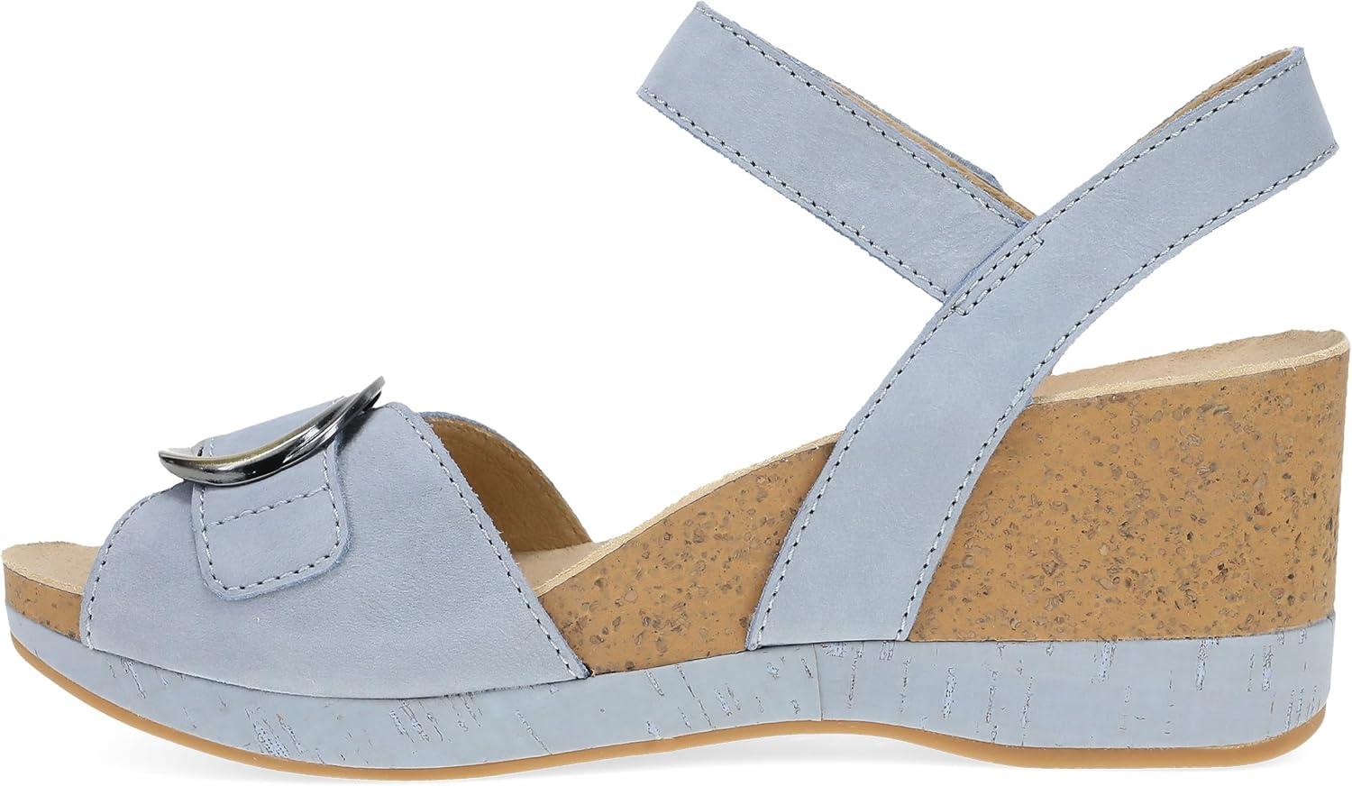 Dansko Stella Multi-Strap Wedge Sandal for Women – Cork/EVA Wedge with Arch Support -Fully Adjustable Straps-Lightweight Rubber Outsole(Sky)