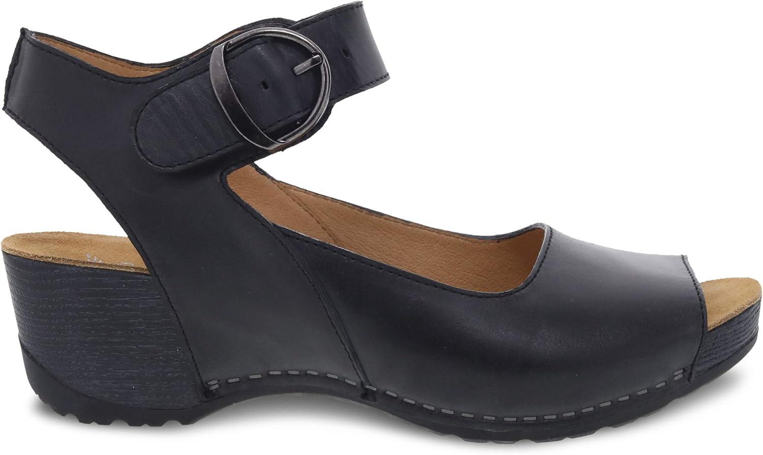 Dansko Tiana Slip-On Platform Sandal for Women – Cushioned, Contoured Footbed for All-Day Comfort and Support – Hook & Loop Strap with Buckle Detail – Lightweight Rubber Outsole(Black)