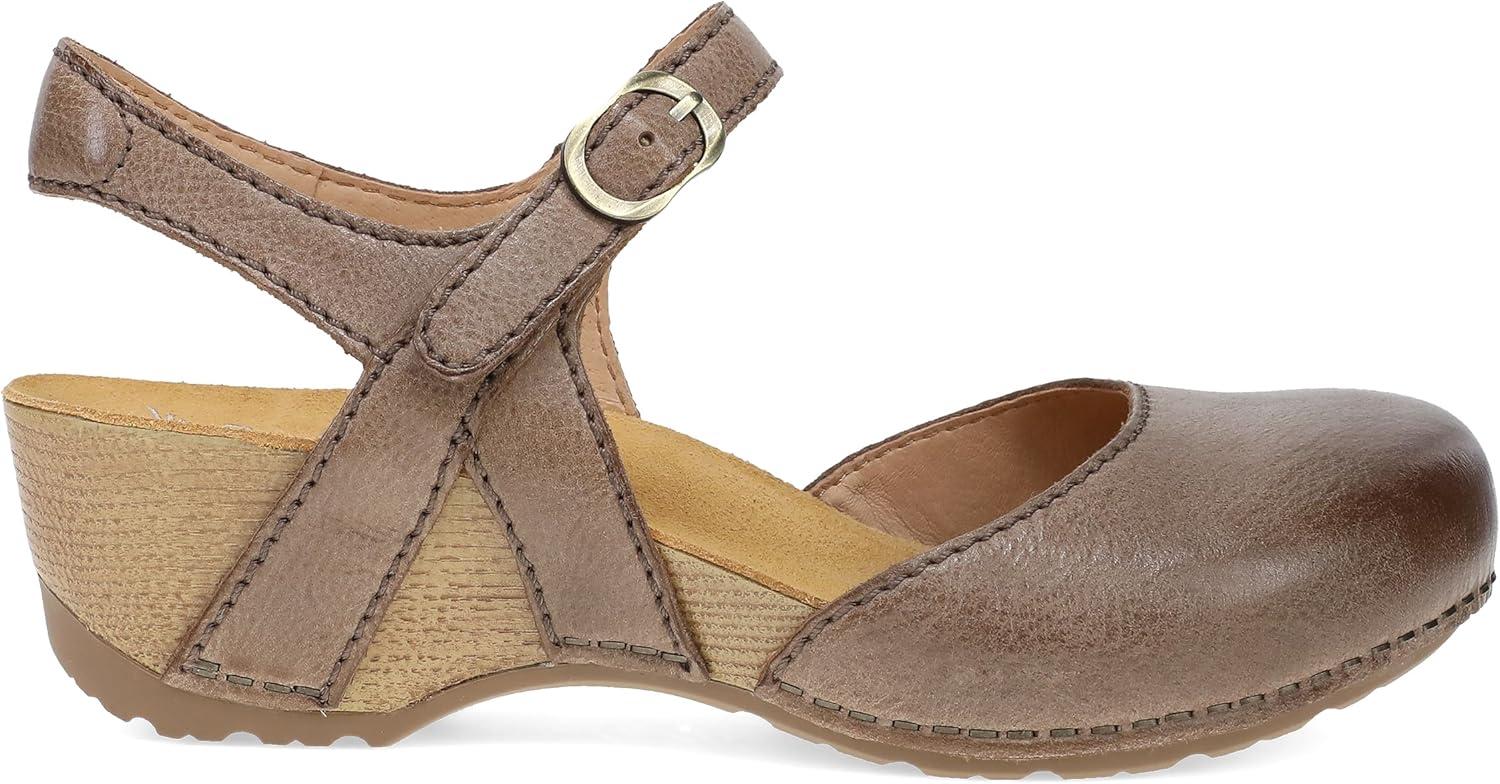 Dansko Tiffani Wedge Sandal for Women – Cushioned, Contoured Footbed for All-Day Comfort and Support – Hook & Loop Strap with Buckle Detail – Lightweight Rubber Outsole(Brown)