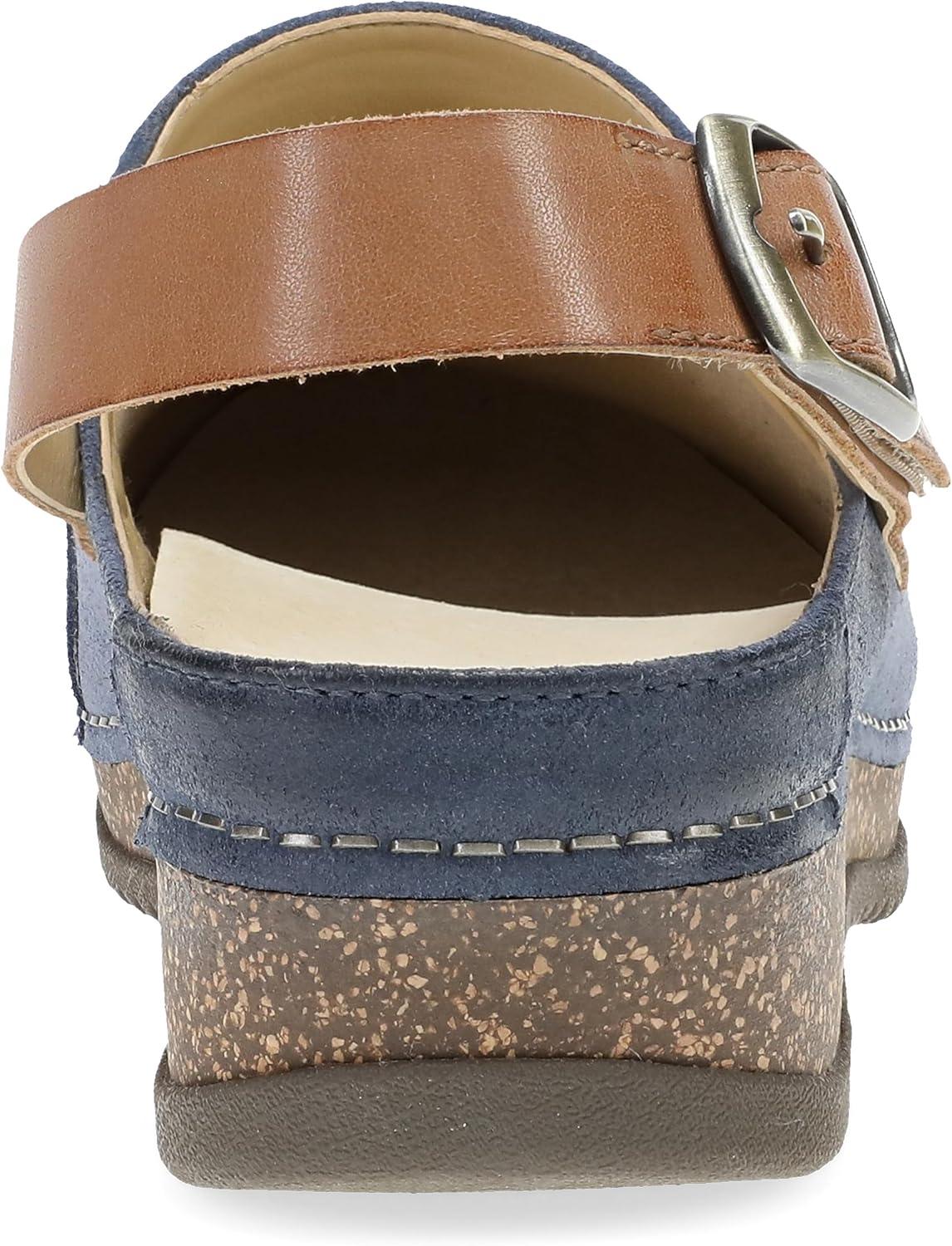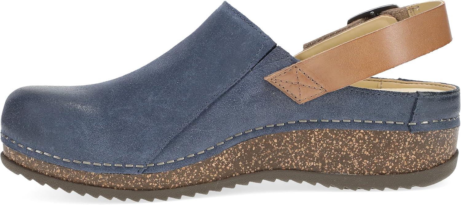 Dansko Women’s Merrin Sling-Back Mule Clog-Dual Density Cork/EVA Midsole and Lightweight Rubber Outsole Provide a Comfortable Ride on Patented Stapled Construction(Blue)