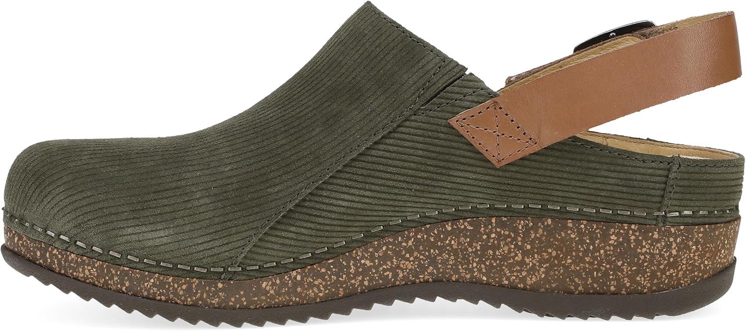 Dansko Women’s Merrin Sling-Back Mule Clog-Dual Density Cork/EVA Midsole and Lightweight Rubber Outsole Provide a Comfortable Ride on Patented Stapled Construction(Olive Embossed)