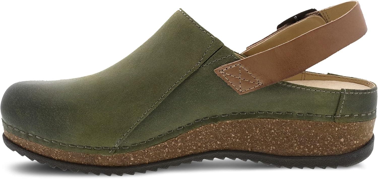 Dansko Women’s Merrin Sling-Back Mule Clog-Dual Density Cork/EVA Midsole and Lightweight Rubber Outsole Provide a Comfortable Ride on Patented Stapled Construction(Olive)