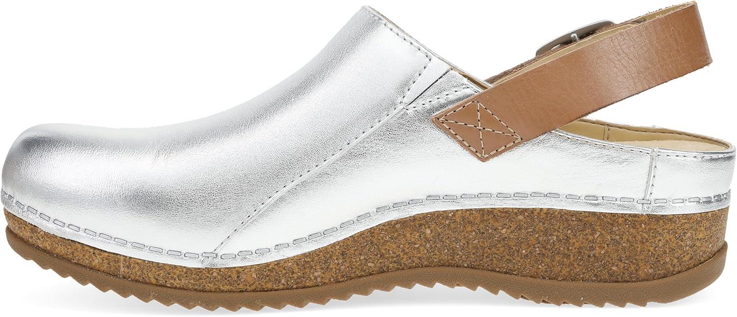 Dansko Women’s Merrin Sling-Back Mule Clog-Dual Density Cork/EVA Midsole and Lightweight Rubber Outsole Provide a Comfortable Ride on Patented Stapled Construction(Silver Metallic)